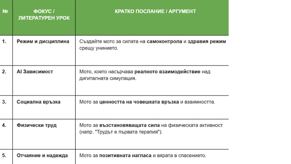 Второто задание е директно свързано с дигиталното приложение “Социален компас”. В него гимназистите създават пет мотивиращи фрази, които на по-късен етап ще бъдат включени в приложението. Вдъхновяващите изречения интегрират в себе си уроците на Робинзон Крузо.