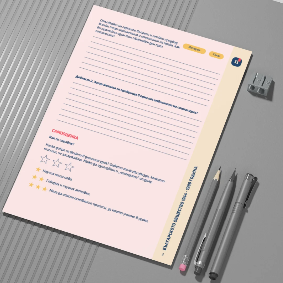 Подходящ за самостоятелна работа, споделяне в малки групи или дискусия в 7. клас, като подпомага развитието на аналитично мислене, комуникационни умения и по-задълбочено разбиране на обществото в периода 1944-1989 година.