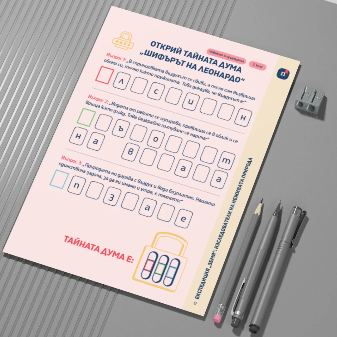 Този Canva шаблон представлява работен лист към урока „Експедиция „Земя“: Изследователи на неживата природа“ (Урок 8 по Човекът и природата за 3. клас). Чрез обобщаващи и практически задачи учениците систематизират знанията си за телата, веществата, въздуха и водата, като анализират техните свойства и приложението им в различни ситуации.