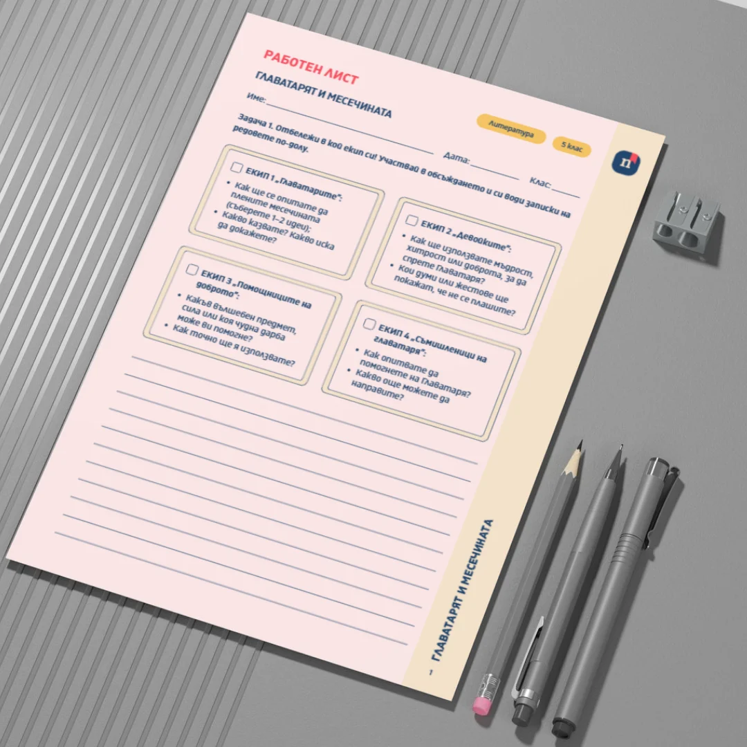 Този Canva шаблон представлява работен лист към урока „Главатарят и месечината“ (Урок 12 по Литература за 5. клас). Чрез екипна работа и писмени задачи учениците анализират конфликта в произведението, разглеждат различни гледни точки и формулират възможни решения. Работният лист насърчава аргументираното изразяване на позиция и осмислянето на поуката от художествения текст.