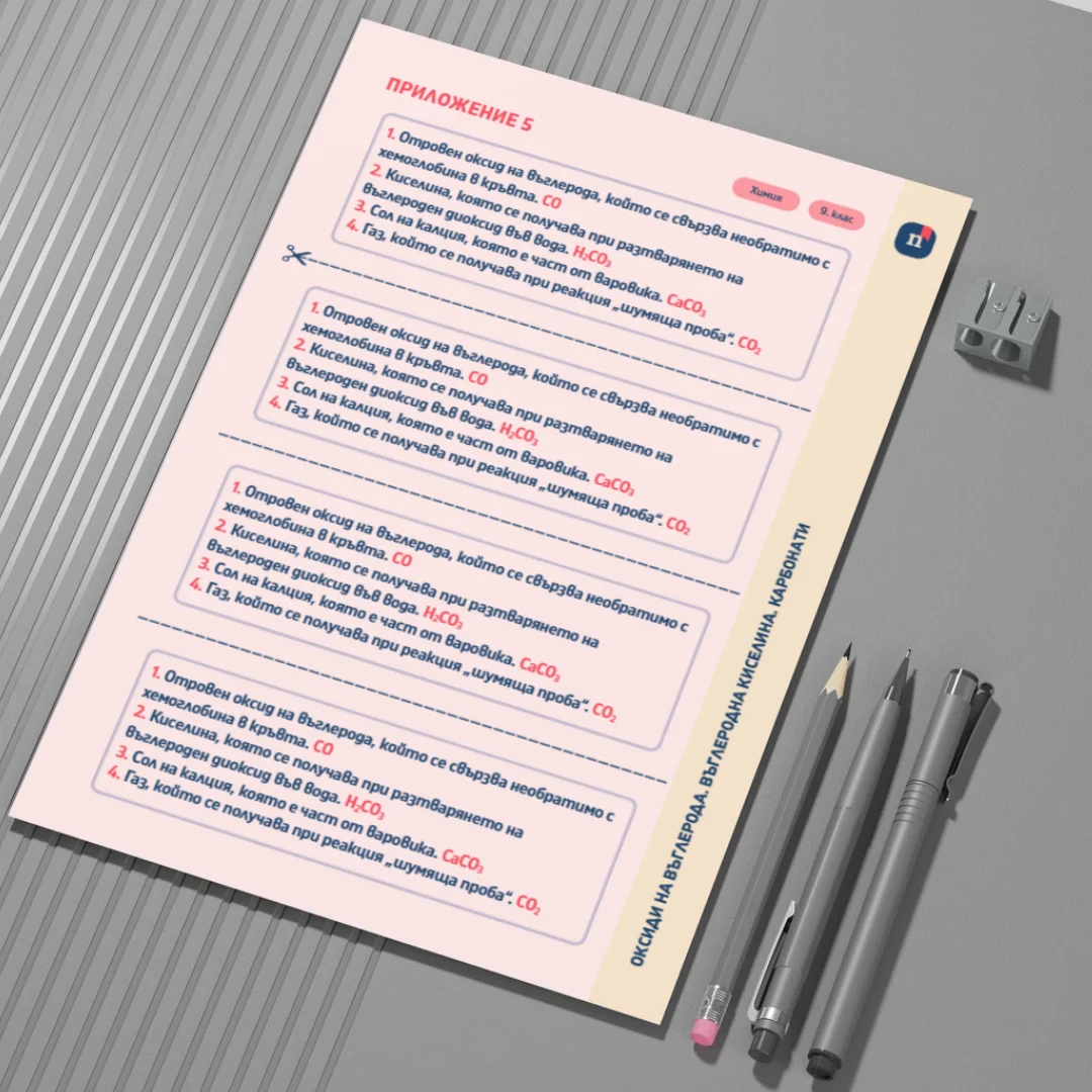 Подходящ за затвърждаване на нови знания, самостоятелна работа или групова дейност в 9. клас.