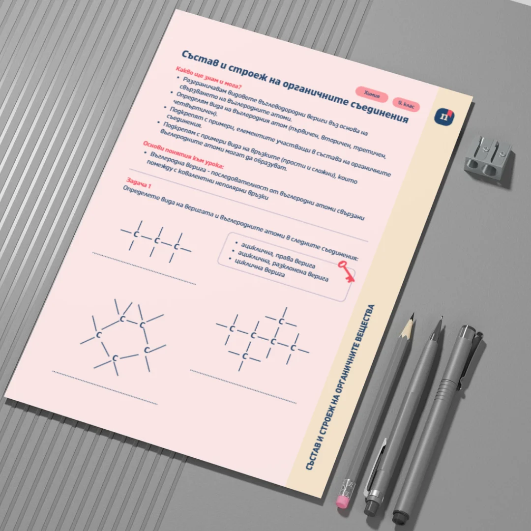 Подходящ за затвърждаване на нови знания, самостоятелна работа или групова дейност в 9. клас.