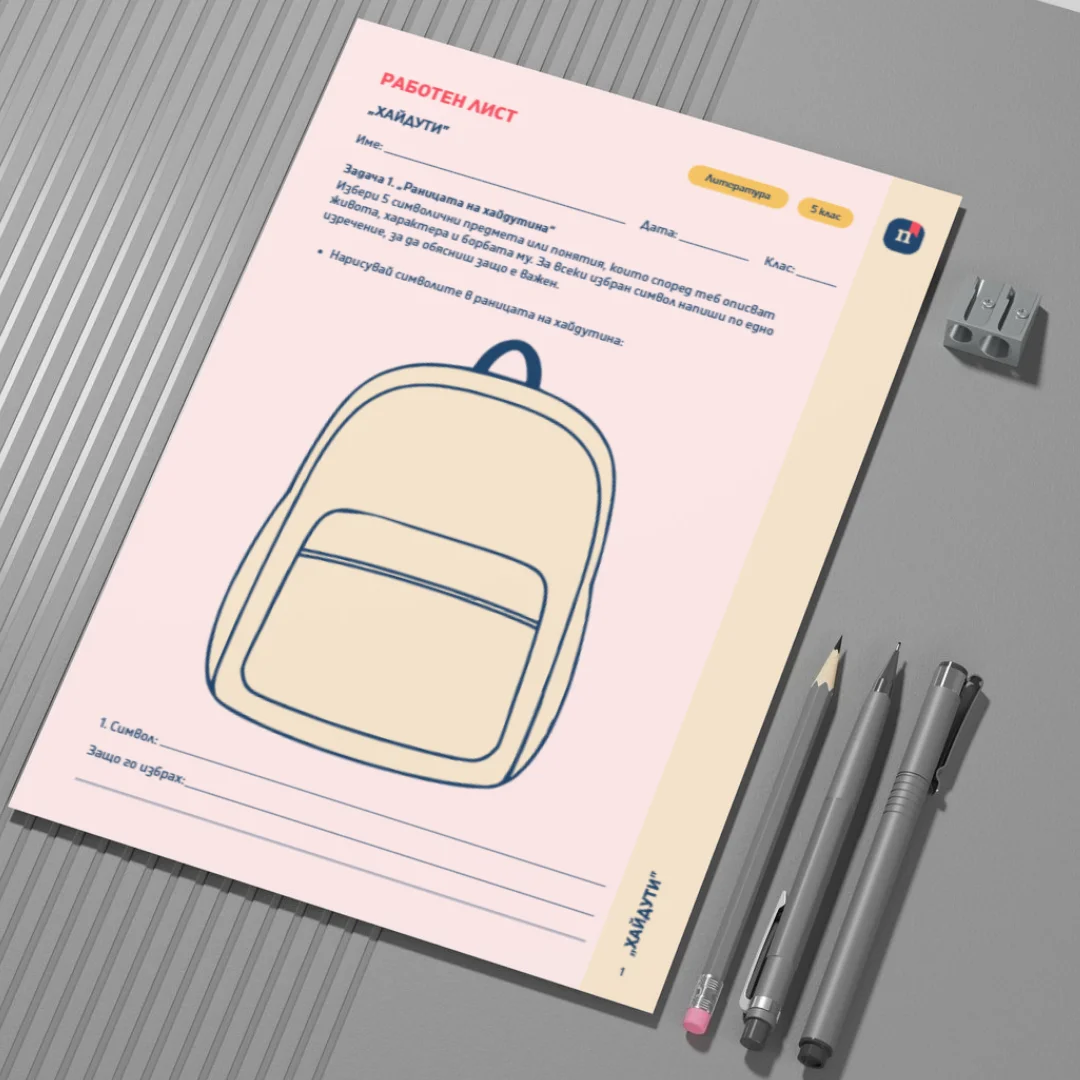Този Canva шаблон представлява работен лист към урока „Смелостта като избор – Ботев и неговите хайдути“ (Урок 7 по Литература за 5. клас). Чрез творчески и интерпретативни задачи учениците осмислят образа на хайдутина и символиката в поемата „Хайдути“. Работният лист насърчава лична позиция, аргументиран избор на символи и изграждане на кратък художествен текст.