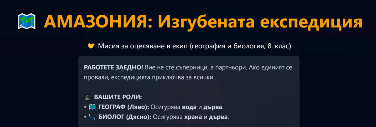 Амазония: Изгубената експедиция (Интерактивна STEM мисия по география и биология за 8. клас)