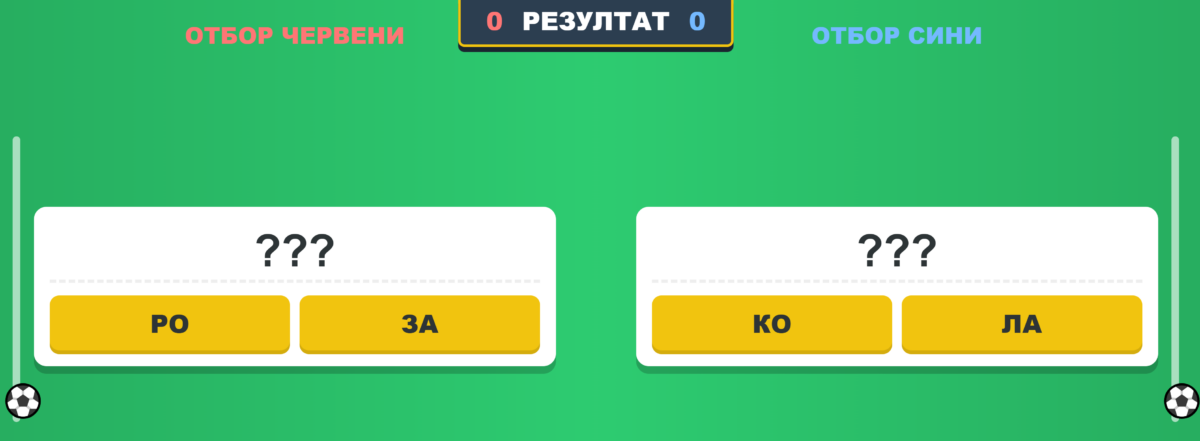 Основна цел: Разработване на динамично приложение за проверка на знания, оформено като футболно състезание, което насърчава екипния дух и бързината на реакциите у учениците.
