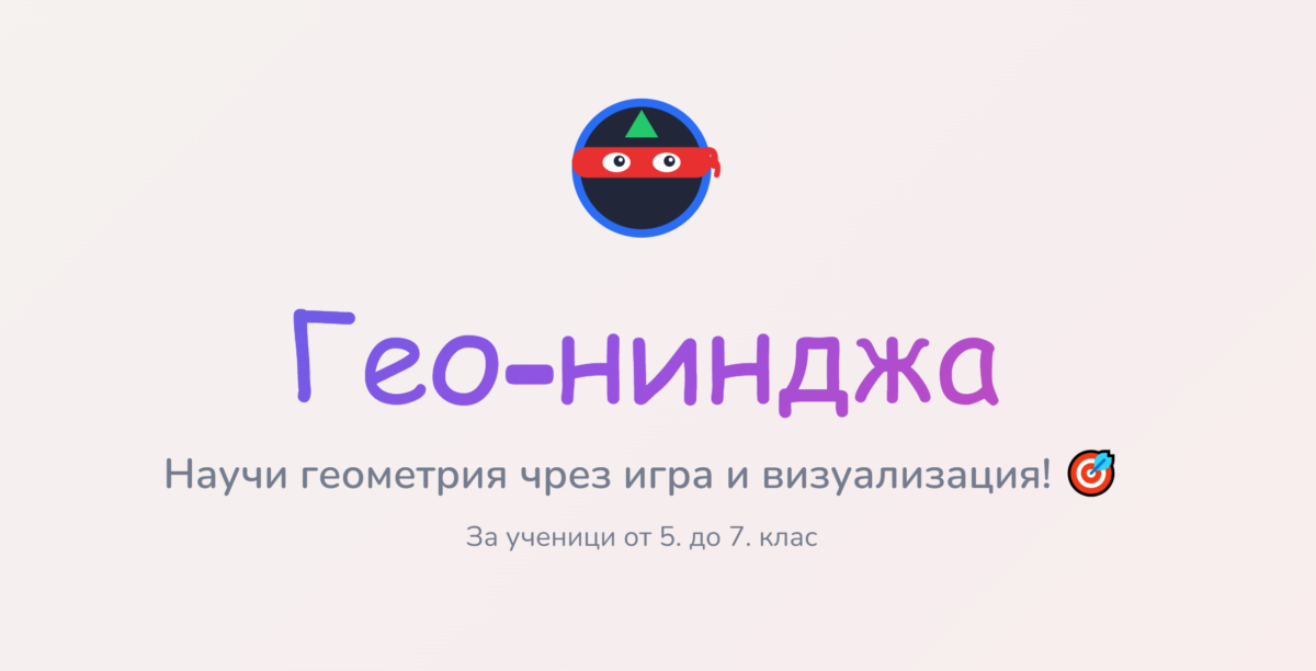**Гео-нинджа** е интерактивно приложение за упражняване и визуализиране на основни **геометрични фигури и тела**, съчетано с игрови елементи, звукови ефекти и система за награди.