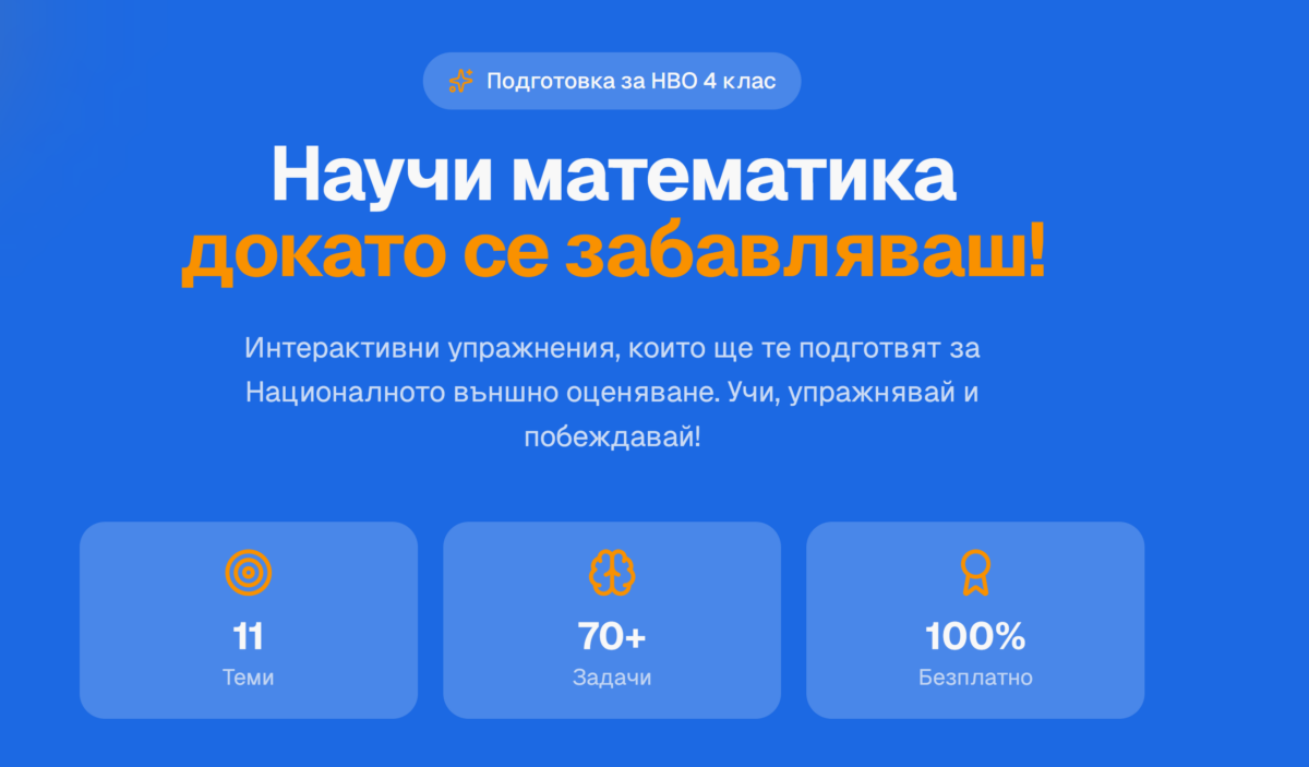 Създай образователно приложение за подготовка по математика за НВО за 4 клас като използваш модела за НВО по математика за 2025г.