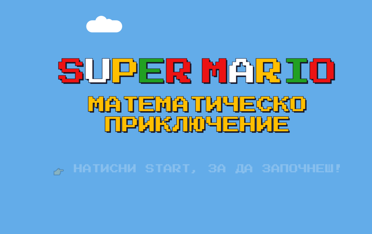 Създадой интерактивна математическа игра в стил Super Mario с 6 нива — редици, пресмятания, текстови задачи и множители. Ретро пиксел дизайн с анимации, облаци, тръби и огън!
