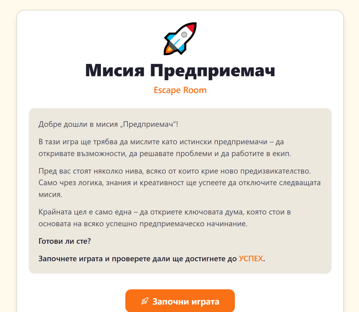 Мисия Предприемач – Escape Room
