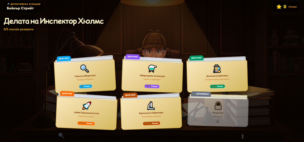 Създай динамична образователна игра, в която учениците да експериментират с вещества и техните свойства, в помощ по човекът и природата за трети клас. Да е свързана с реалния живот и да подпомага обучение и в Стеам