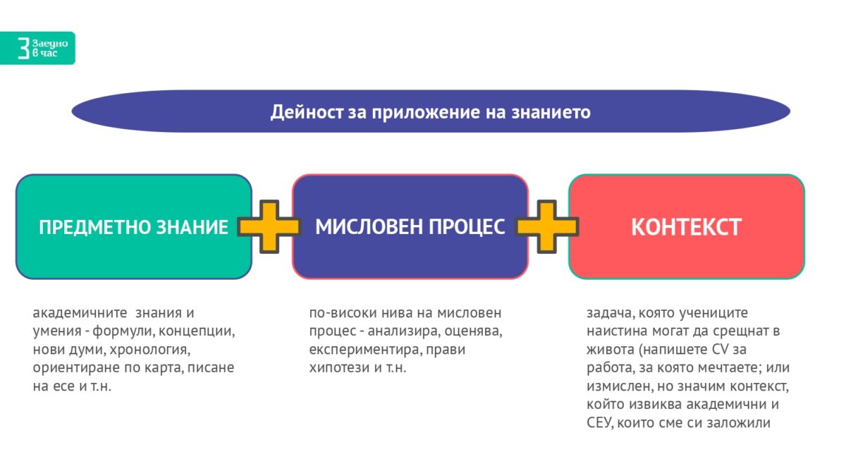 - Прилагат не само знания, но и СЕУ, и академични умения за справяне с дейността
