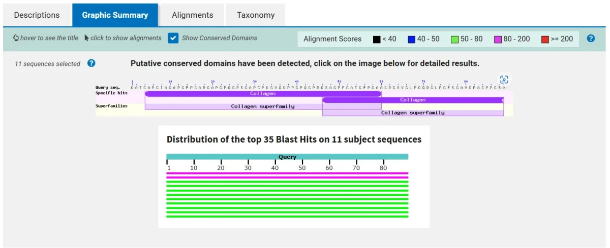 - Група “Тиранозавър” въвежда в полето за търсене следната частична последователност на колагеновия протеин, заедно със заглавния ред: