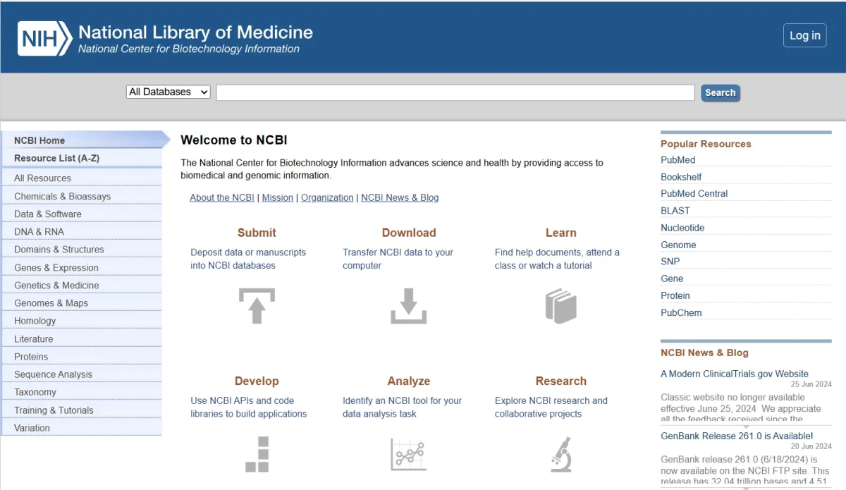 - Влезте в уебсайта на NCBI National Center for Biotechnology Information (nih.gov) или напишете BLAST в Google, за да отворите сайта на Националния информационен център по биотехнологии.