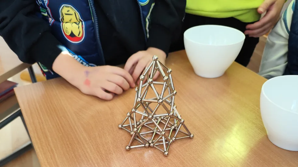 Учениците от 6. клас създават електрически вериги с подръчни материали и разказват на малчуганите как работят веригите и защо лампичките светват. Чрез магнитни пръчици и топчета първокласниците създават кули, чието смачкване под силата на магнитите илюстрира явлението имплозия.