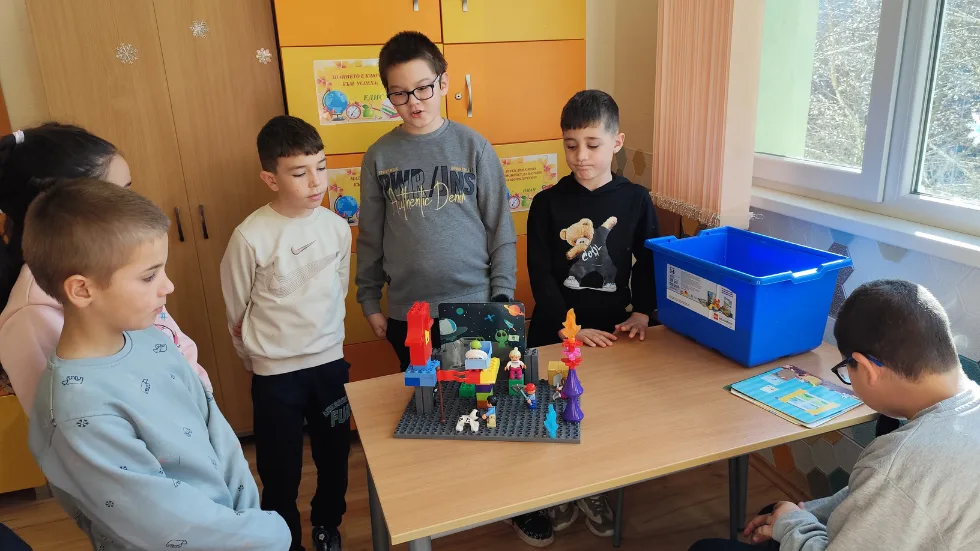 Мариана Шикова и Шинка Чаушева създават този урок, интегриращ компютърно моделиране и технологии. Те дават избор на малчуганите как да работят – дали да създадат дигитални истории на тема „Разходка на Луната“ в платформата Scratch, или да пресъздадат историята си чрез LEGO конструктор.