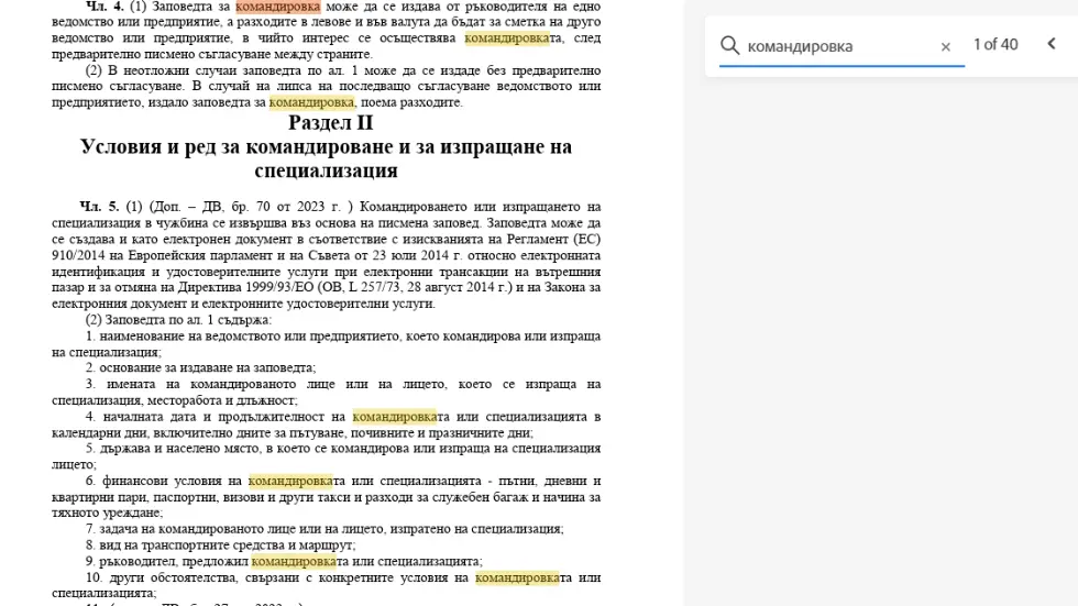 • Упражнение по гражданско образование: “Отворете текста на Конституцията на Република България. Използвайте функцията за търсене, за да намерите всички членове, които споменават правата на гражданите.”