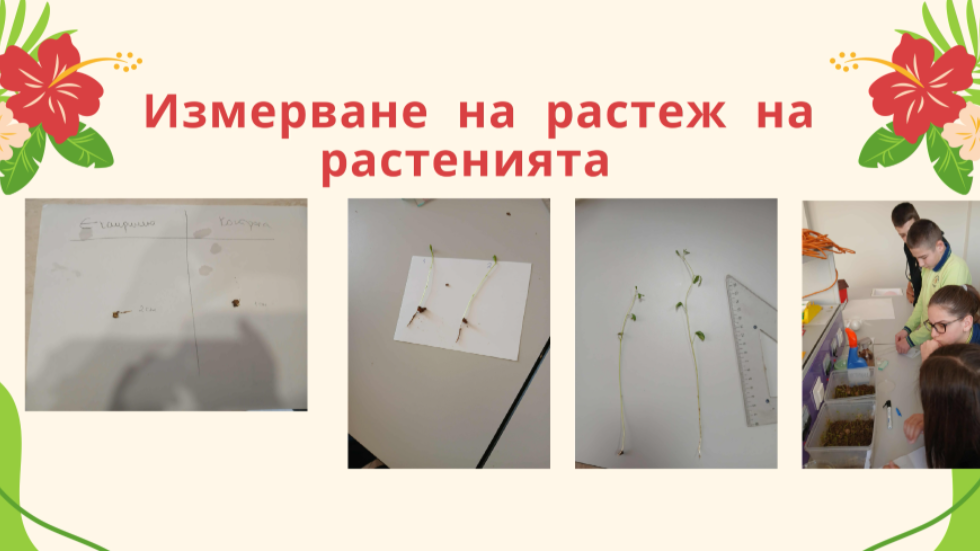 - Екип 2: Наблюдава и измерва растежа на растения в контролна и експериментална проба;