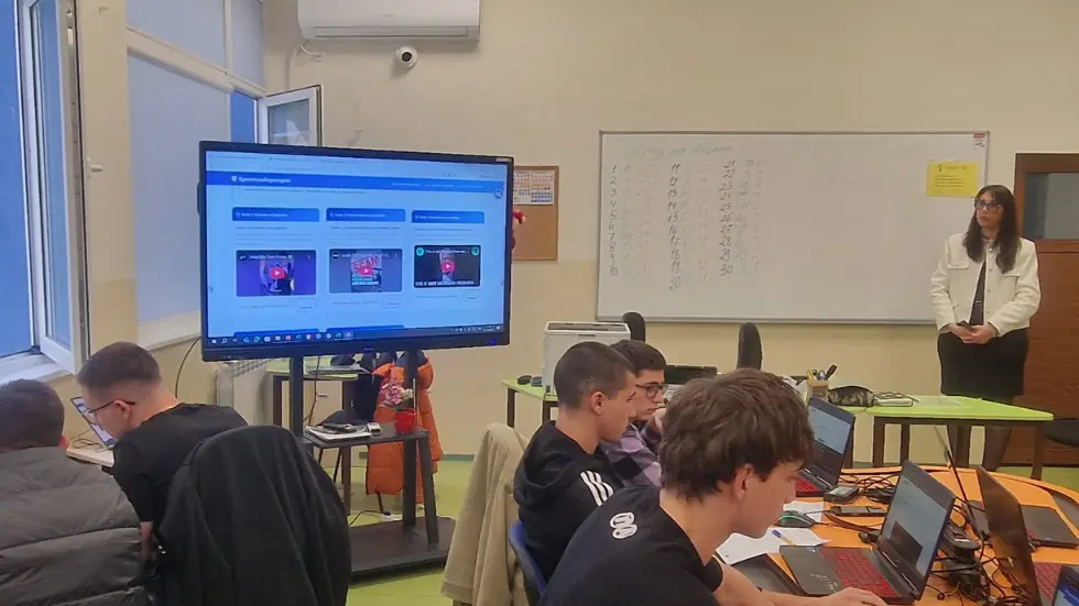 В първата практическа дейност учениците работят с реални видеоклипове, които анализират с помощта на специално подготвена образователна страница и външни инструменти за разпознаване на deepfake съдържание. Младежите наблюдават детайли като движението на устните и очите, светлината, изражението на лицето и гласа. В представянето на темата активно участва и ученик от 12. клас, който, заедно с преподавателя, презентира съдържанието и подкрепя въвеждането на задачите, превръщайки учениците от слушатели в равноправни участници в учебния процес.