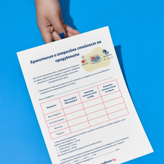 - Работен лист “Хранителна и енергийна стойност на продуктите”;