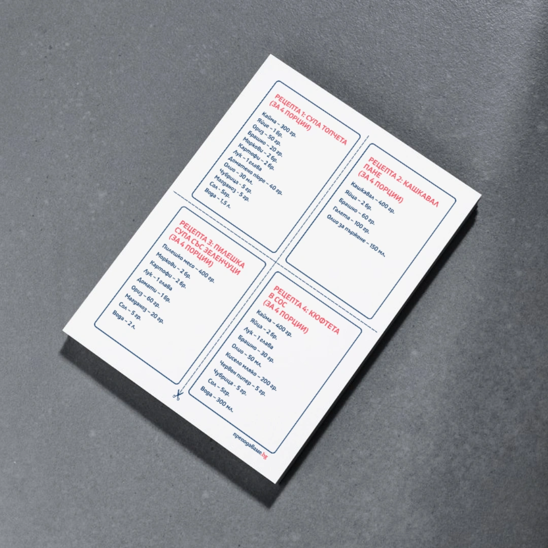 “Днес отново ще се разпределим в екипи. Всяка група ще получи по 3 различни рецепти. Първата ви задача е да запишете отношенията между основните съставки за всяка рецепта (например брашно : захар, яйца : прясно мляко).