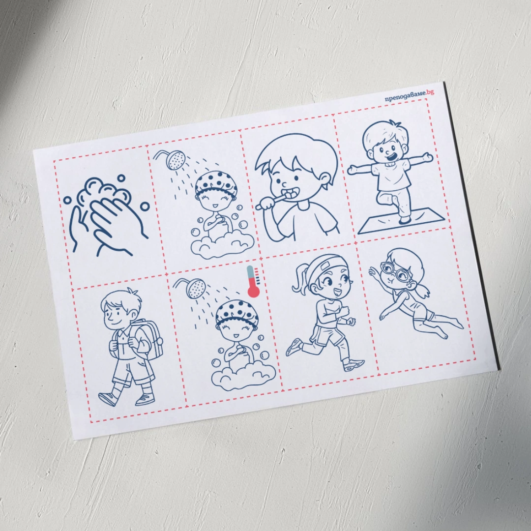 Всяка група получава картинка, свързана със здравословния начин на живот, текст, описващ друга картинка, и текст, който описва противоположното поведение – нездравословен навик. Учениците обсъждат и анализират дейности, свързани с личната хигиена, закаляването и спорта, за да разберат по-добре как ежедневните им навици влияят на тяхното здраве.