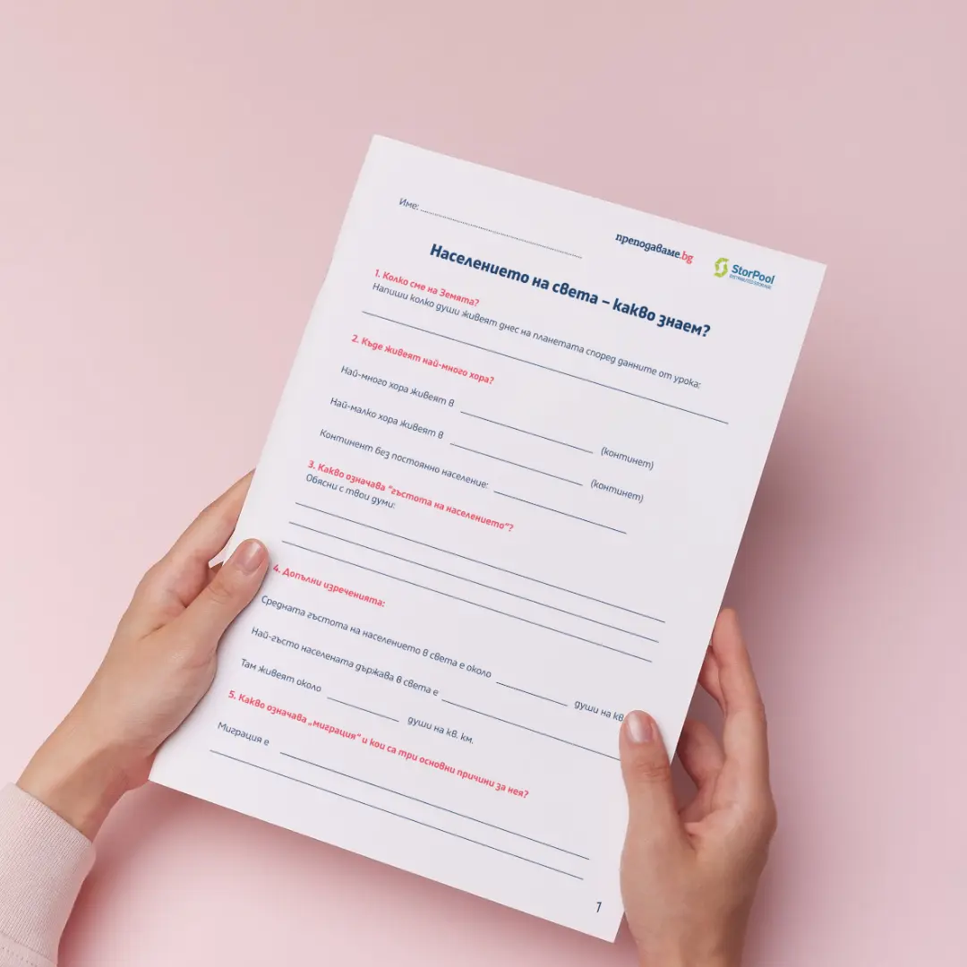 - След презентацията учениците попълват работния лист “Населението на света – какво знаем?“ (по един на ученик). В него те работят самостоятелно, за да затвърдят наученото.