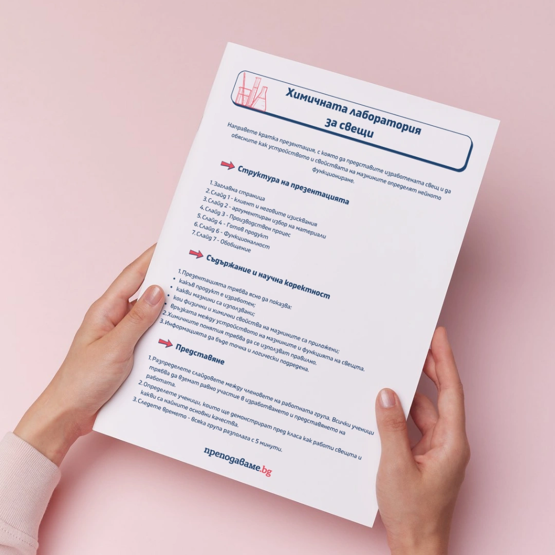 - Запишете (или прожектирайте) насочващите въпроси, които да ръководят учениците при представянето.