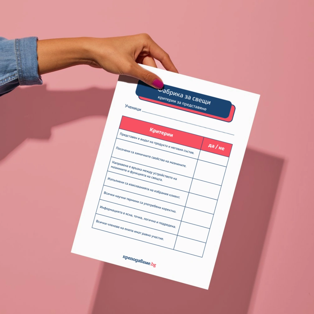 - Можете да запознаете учениците с кратък списък с характеристики, по които биха могли да оценят проектите на своите съученици и да им дадат обратна връзка (по преценка на учителя).