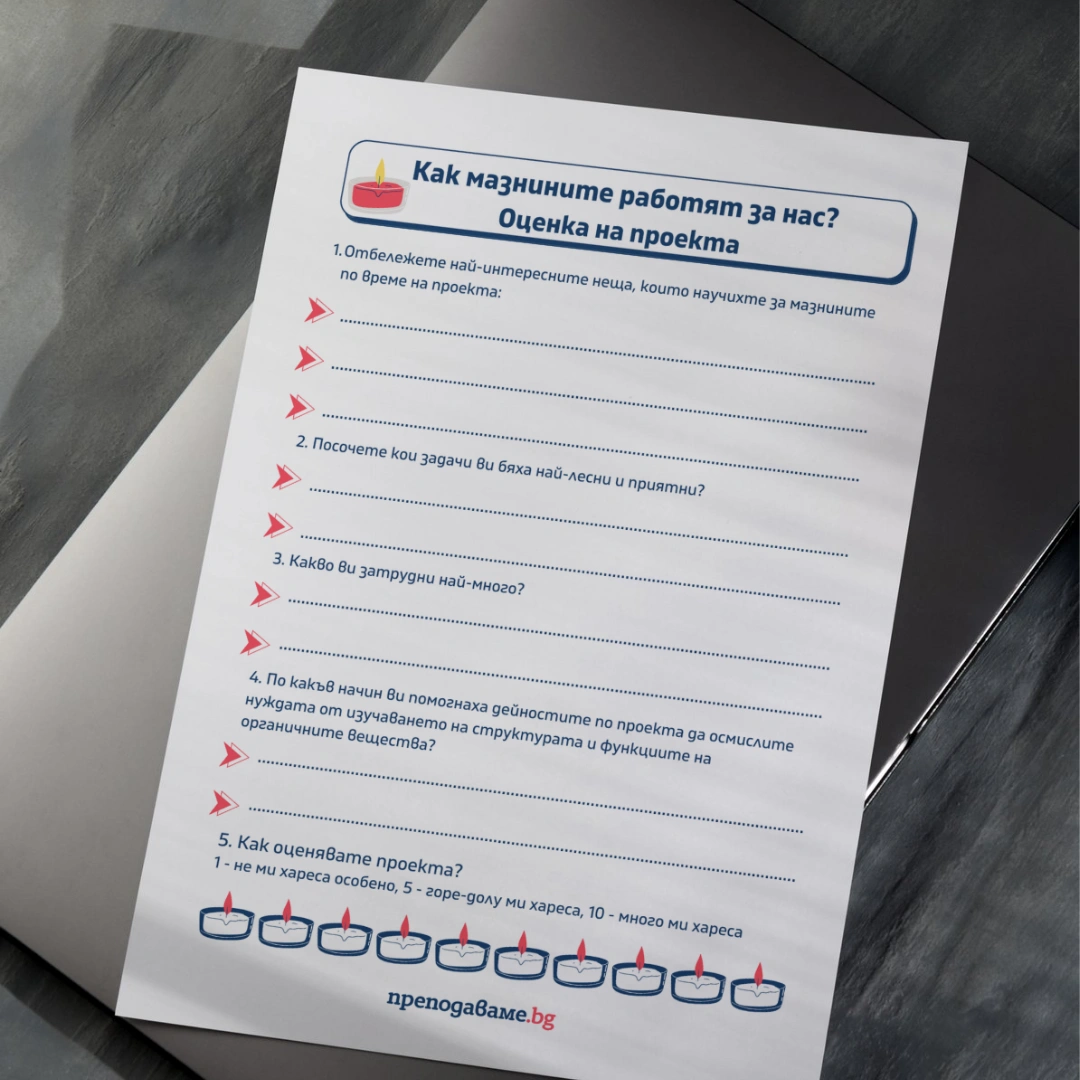 - "Време е да сложим край на работата и по този наш проект. За пореден път показахте последователност, старание и усилия. Ред е да обърнем поглед назад и да видим как се чувствахте да работите по този проект и какво остави най-силни впечатления у вас.