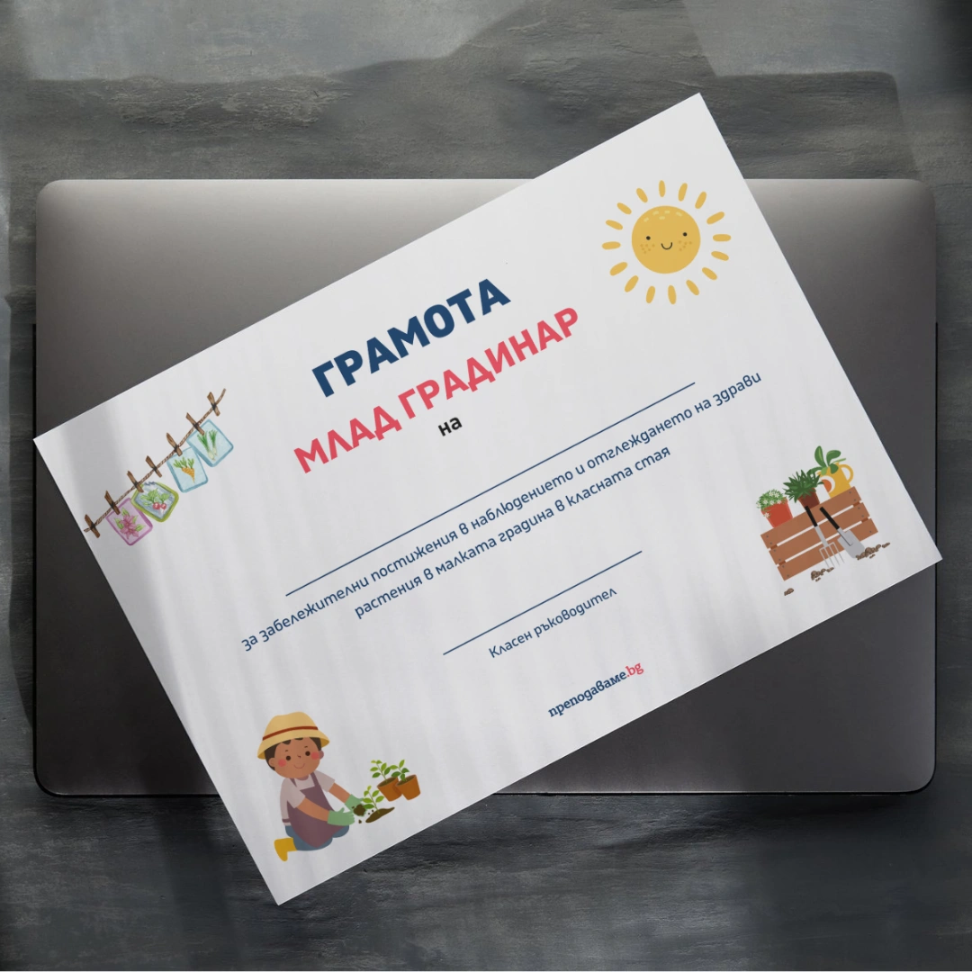 - "Благодаря на всички ви за участието и активността. Както вече казах, постигнахте забележителни резултати, затова и всеки от вас ще бъде удостоен с почетна грамота “Млад градинар”.