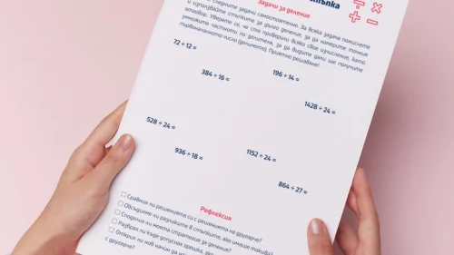 "Работихме индивидуално, за да упражним стъпките на алгоритъма за деление и да затвърдим уменията си. После обсъдихме по двойки различни решения, за да видим, че има повече от един правилен начин за мислене и решаване. Това ни учи да бъдем по-гъвкави и внимателни при решаване на задачи в училище и в реални ситуации"