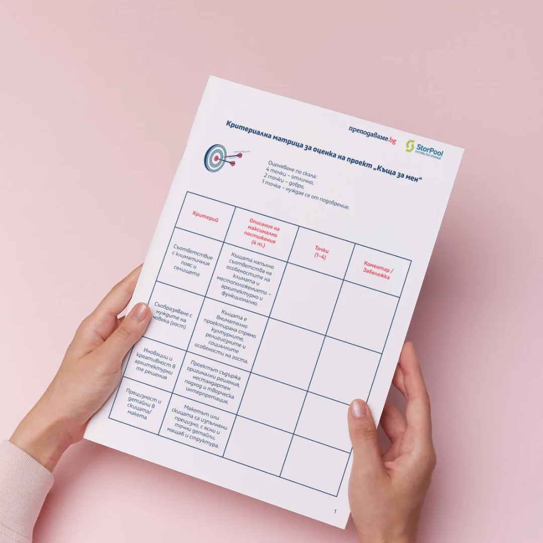 - Водете си кратки бележки за представянето на всеки екип или директно попълвайте критериалната матрица, за да сте готови за финалната оценка.