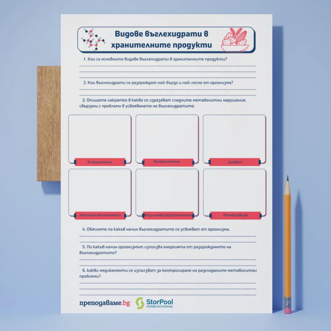 - Работен лист “Видове въглехидрати в хранителните продукти”.