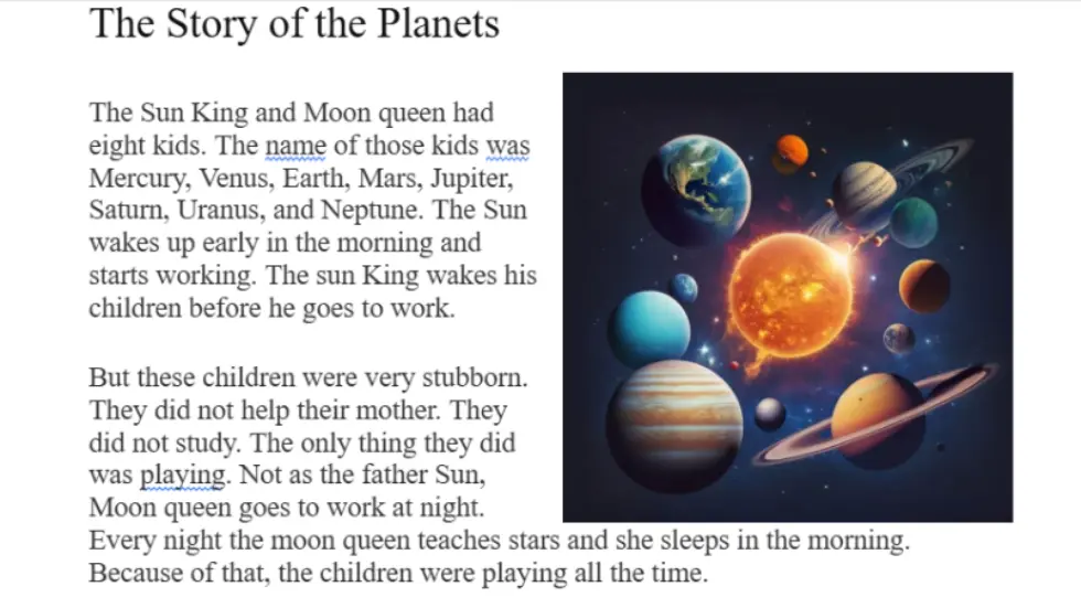 Снимка 2. Приказката, която разказва историята на планетите