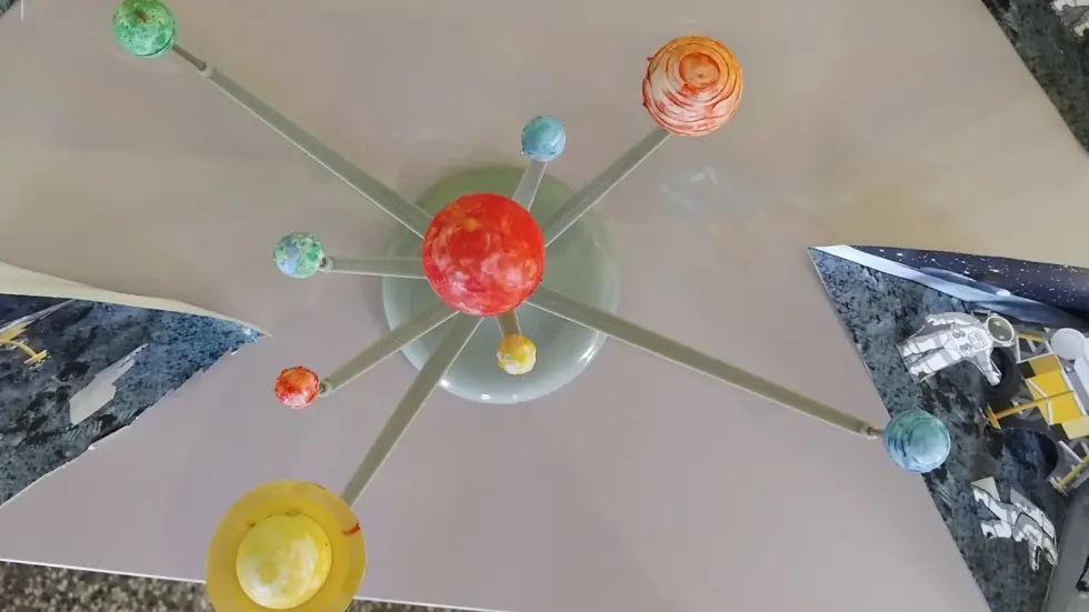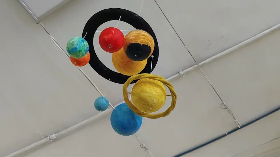 Снимка 1. Макет на Слънчевата система, изработен от стиропорени топки