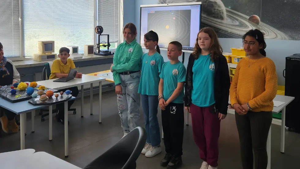 В часовете по компютърно моделиране г-н Джуров поставя задача на малчуганите да създадат дигитален макет на Слънчевата система в платформата Scratch. Младите космически изследователи работят по заданието в рамките на три учебни часа.