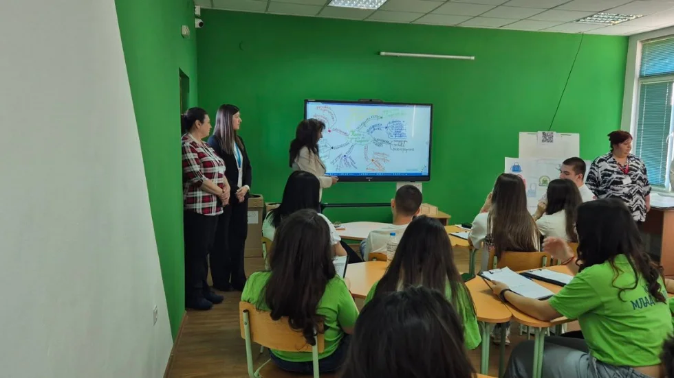 Учителите поставят началото на проектната дейност в час по биология, проведен съвместно от г-жа Драшанска и г-жа Накова. Учителите и учениците създават мисловна карта, която систематизира знанията на учениците по въпроса „Какво е бъдещето на земеделието?“ В рамките на тази дейност учениците анализират и визуализират факторите, тенденциите и иновациите, които оформят бъдещето на земеделието – екологични, технологични, икономически и социални.