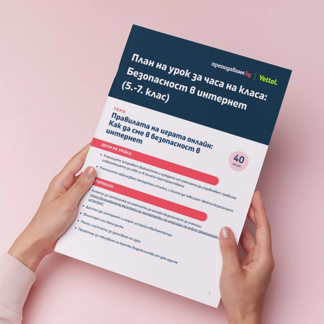 Този интерактивен урок въвежда учениците от 5. до 7. клас в света на интернет безопасността по достъпен и ангажиращ начин. Чрез игра, самооценка и дискусии, учениците ще научат какви опасности крие онлайн пространството и как могат да се предпазят от тях. Урокът използва подходящ за възрастта език и примери, които правят темата разбираема, близка и реална за учениците.