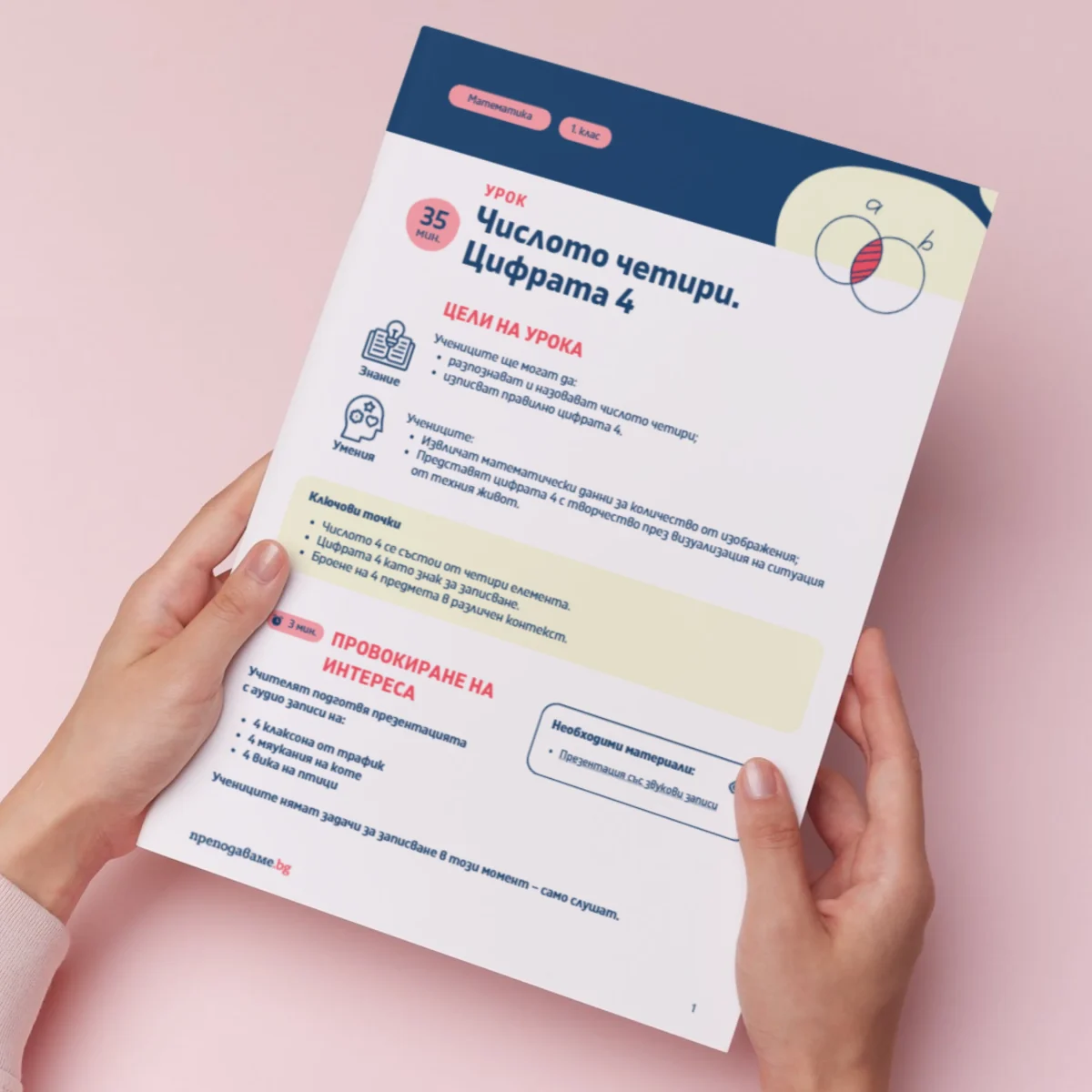 - Във файла за изтегляне ще откриете цялостно разработен урок, създаден специално за учителя. Той включва подробни инструкции за провеждане на дейностите, ясни задачи и насоки за работа с учениците, както и готови работни листове, които може лесно да разпечатате и използвате в час. Така всичко необходимо за успешното провеждане на урока е под ръка, за да се фокусирате върху активното учене и ангажираността на децата.