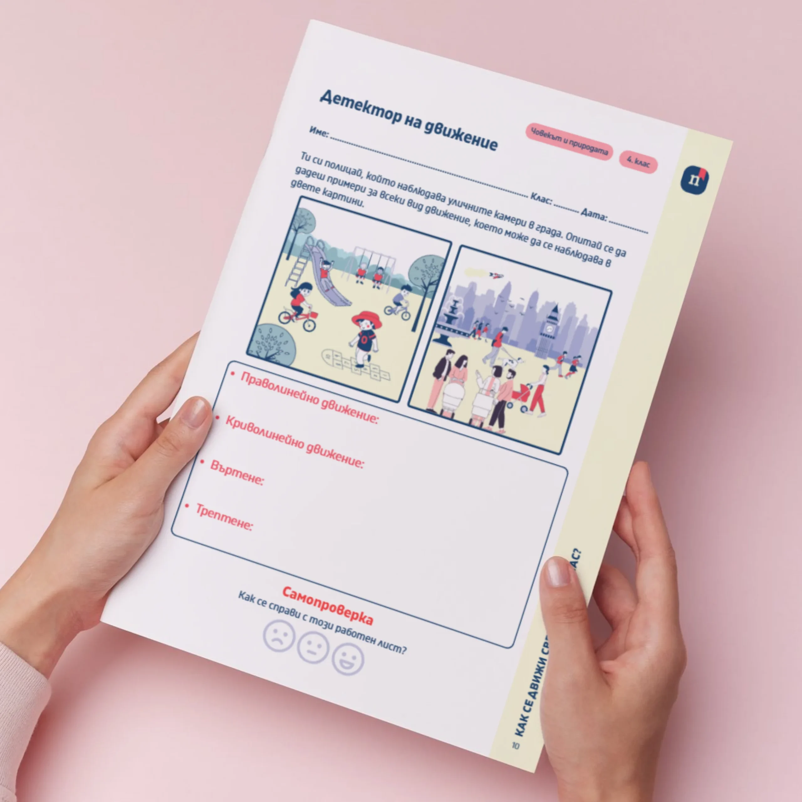 - Във файла за изтегляне ще откриете цялостно разработен урок, създаден специално за учителя. Той включва подробни инструкции за провеждане на дейностите, ясни задачи и насоки за работа с учениците, както и готови работни листове, които може лесно да разпечатате и използвате в час. Така всичко необходимо за успешното провеждане на урока е под ръка, за да се фокусирате върху активното учене и ангажираността на децата.
