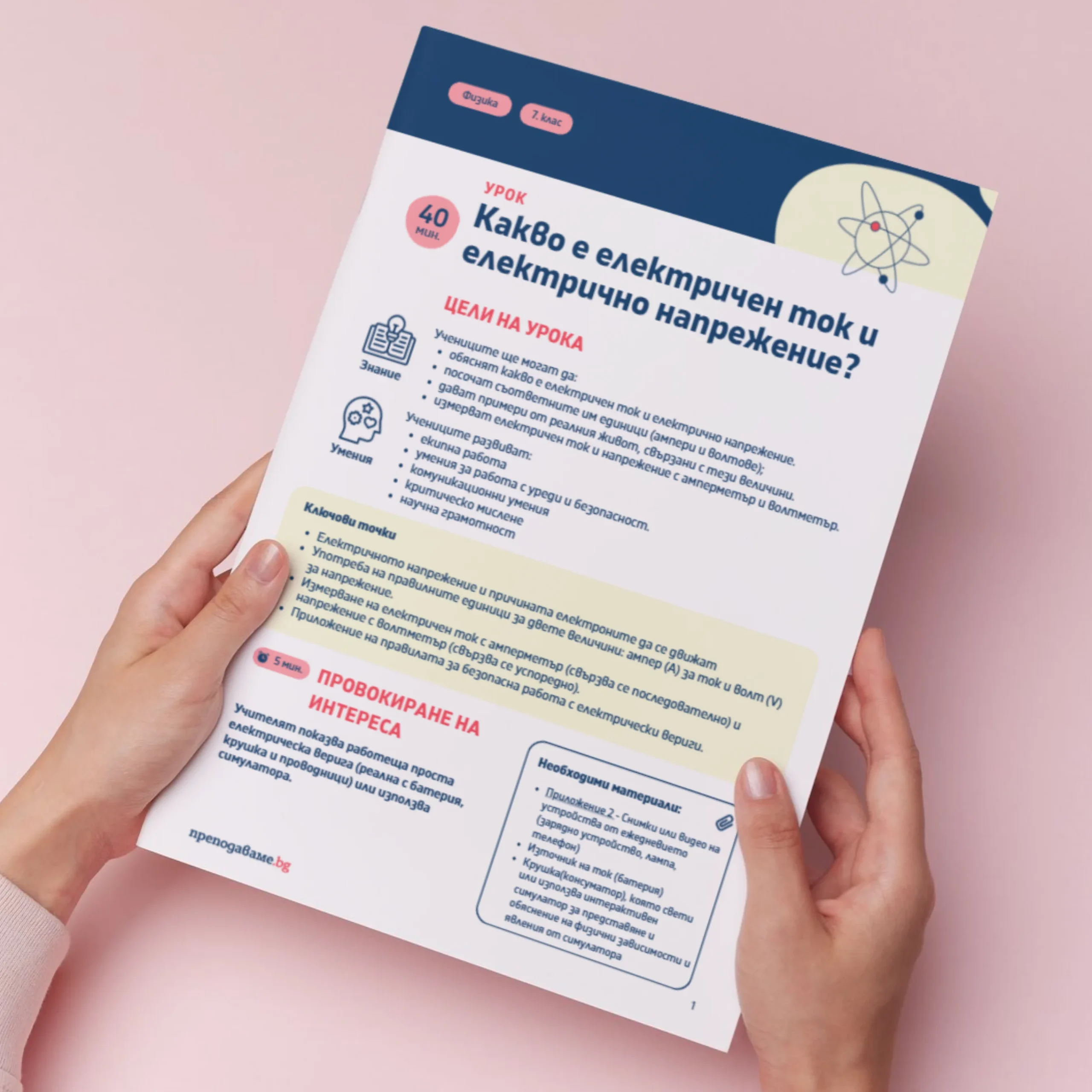В този урок по Физика за 7. клас учениците ще открият какво представляват електричният ток и електричното напрежение, как се измерват и как се проявяват в ежедневието. Основният акцент е поставен върху разбиране на смисъла на тези величини чрез практическо приложение. Чрез работа по двойки, използване на реални уреди и дискусии, учениците ще изградят стабилна основа за работа с електрически вериги и ще усвоят основни принципи за безопасност.