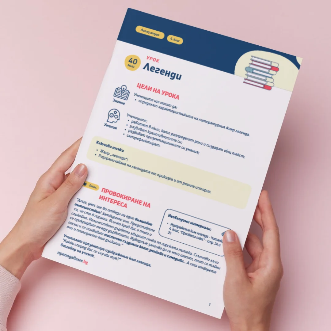 В този урок по Литература за 4. клас учениците ще изследват жанра легенда, ще откриват неговите основни характеристики и ще развиват умения за творческо писане чрез създаване на собствена легенда. Акцентът е върху сравнение с други жанрове, сътрудничество в екип и активно учене чрез творчество, дискусия и представяне на резултатите.