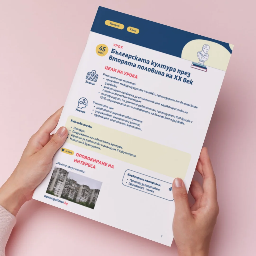 - Във файла за изтегляне ще откриете цялостно разработен урок, създаден специално за учителя. Той включва подробни инструкции за провеждане на дейностите, ясни задачи и насоки за работа с учениците, както и готови работни листове, които може лесно да разпечатате и използвате в час. Така всичко необходимо за успешното провеждане на урока е под ръка, за да се фокусирате върху активното учене и ангажираността на децата.