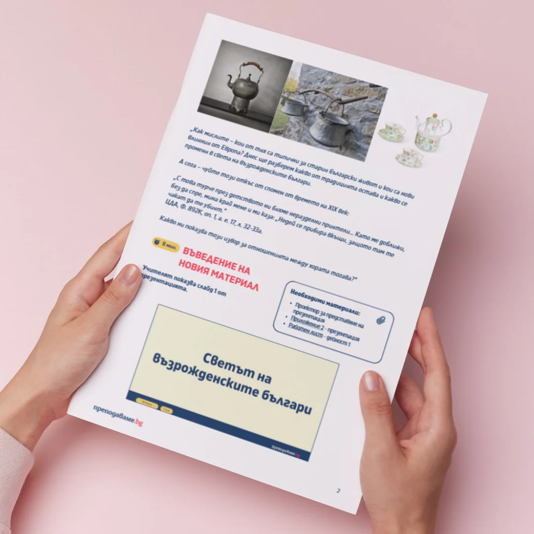 В този урок по История за 7. клас учениците ще открият как европейските влияния променят света на възрожденските българи, като проследят пътуванията на известни личности, промените в градската и селската среда и динамиката на идеите през XIX век. Урокът комбинира анализ на исторически свидетелства, аргументация и екипна работа, така че учениците да разберат как културните и социалните промени оформят българското общество.