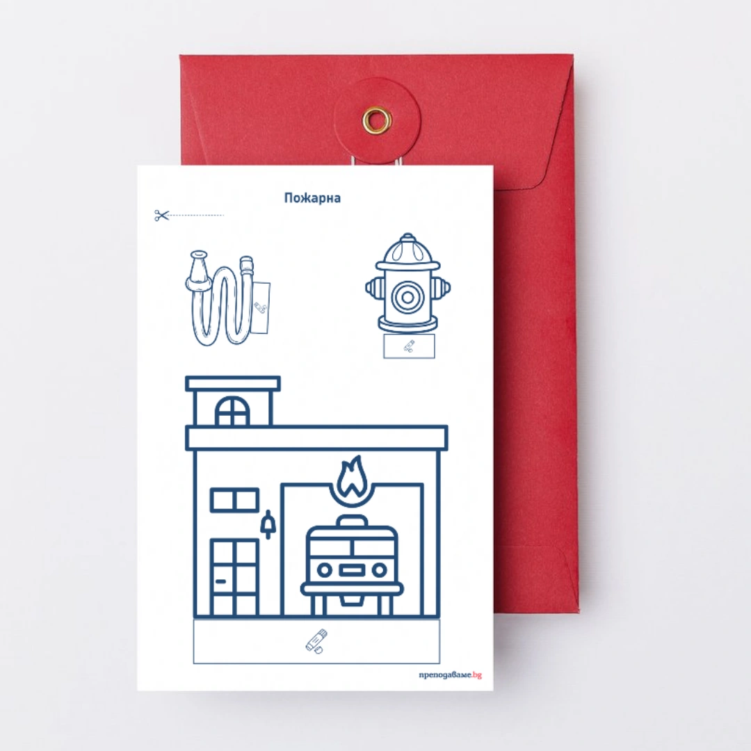 Работен лист към урок „Строим сцената: диорама между пожарната и пещерата“ (Урок 3 от ПБО № 3 „Между пожарната и драконовата пещера” по Изобразително изкуство за 1. клас.) Работният лист подпомага учениците при създаване на визуална сцена чрез подбиране и комбиниране на елементи от различни среди. Чрез изрязване и подреждане на изображения учениците изграждат пространствено мислене и разбиране за композиция.
