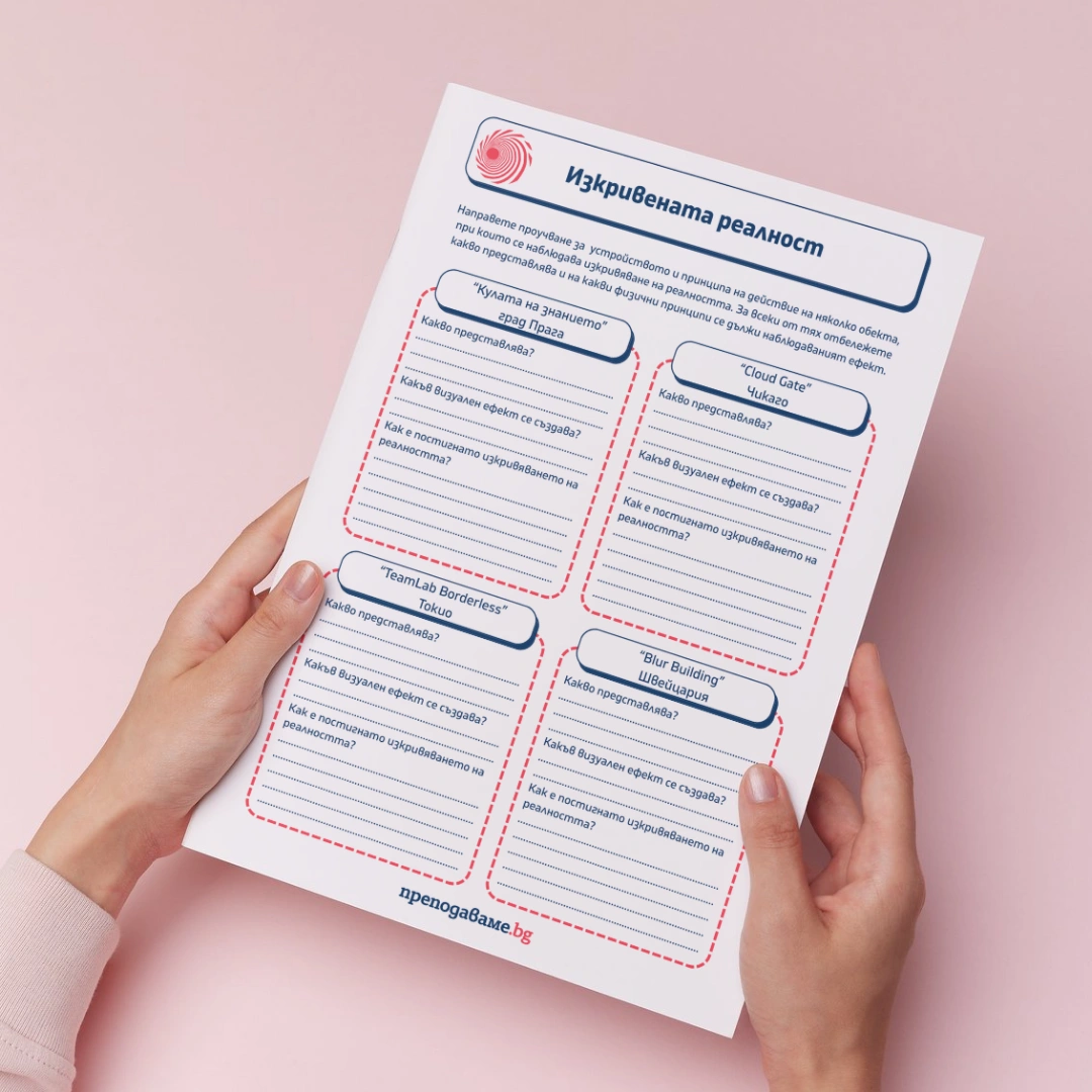 Раздайте на всеки ученик по едно копие от заданието за домашна работа. В него всеки самостоятелно трябва да изследва устройството и принципа на действие на няколко обекта, при които се наблюдава изкривяване на реалността.