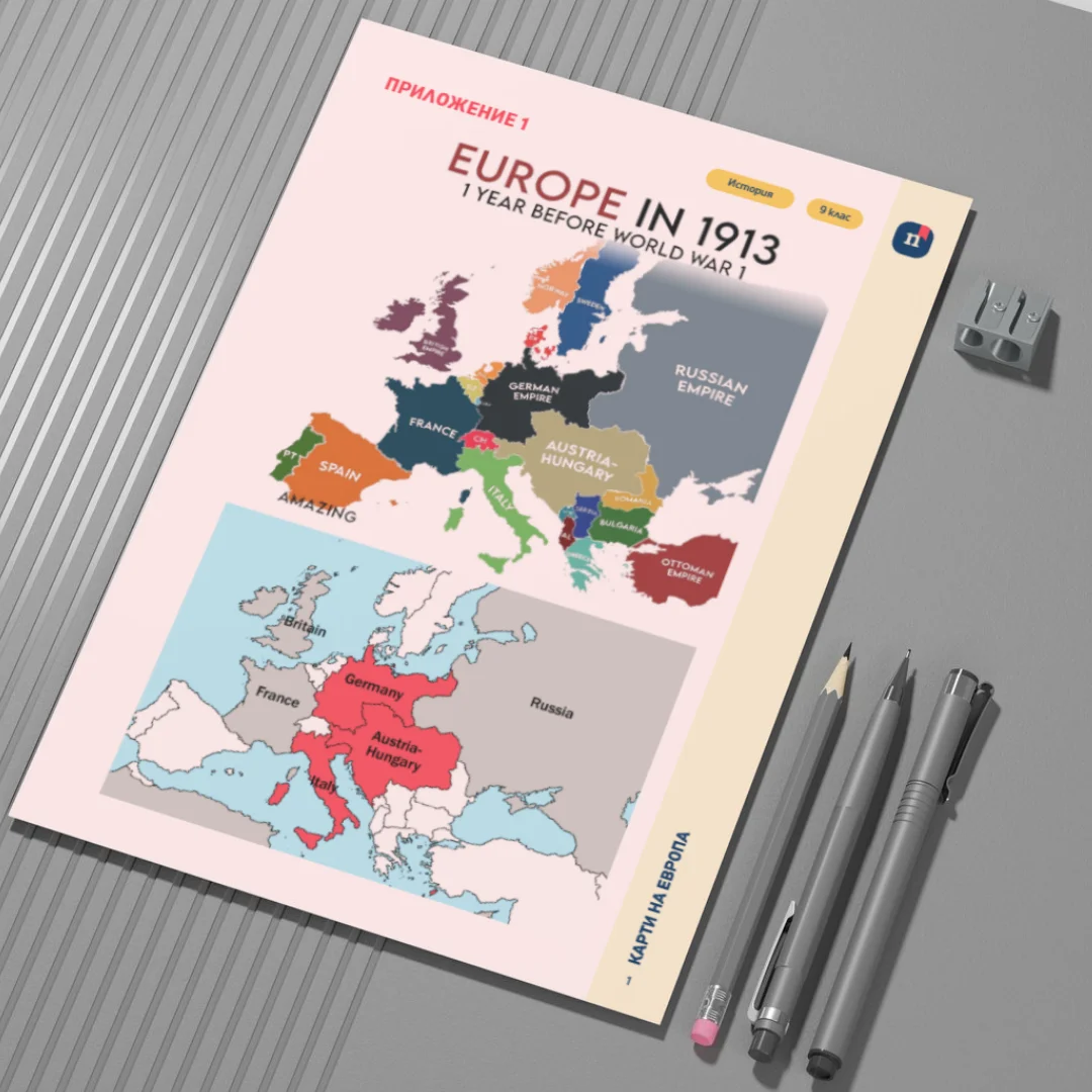 Подходящ за индивидуална работа, работа в екип или подготовка за дебат в 9. клас, като подпомага развитието на аналитично мислене, умения за аргументация и по-добро разбиране на международните отношения в навечерието на Първата световна война.