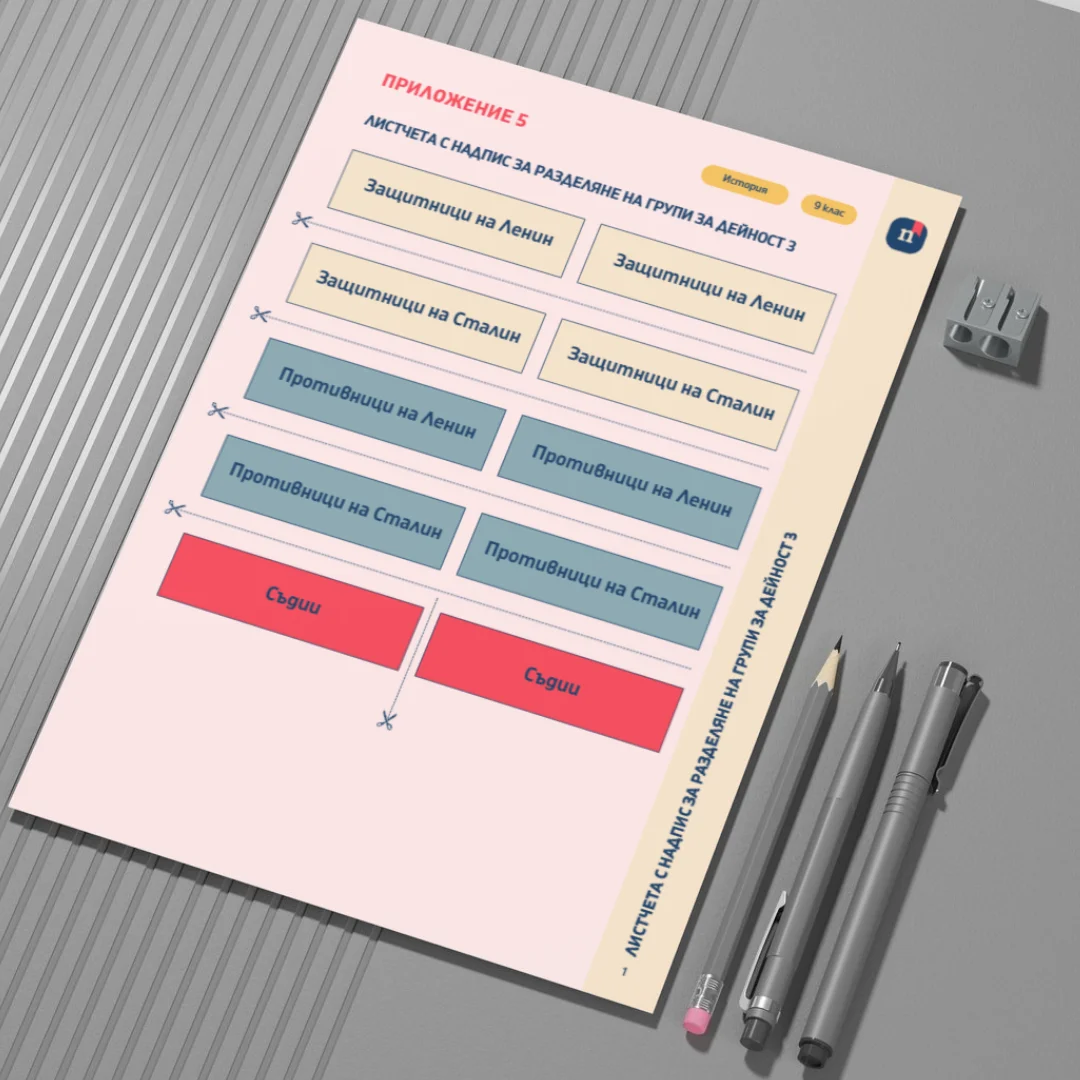 - раздели за подготовка на аргументи „за“ и „против“ политиките на Ленин и Сталин