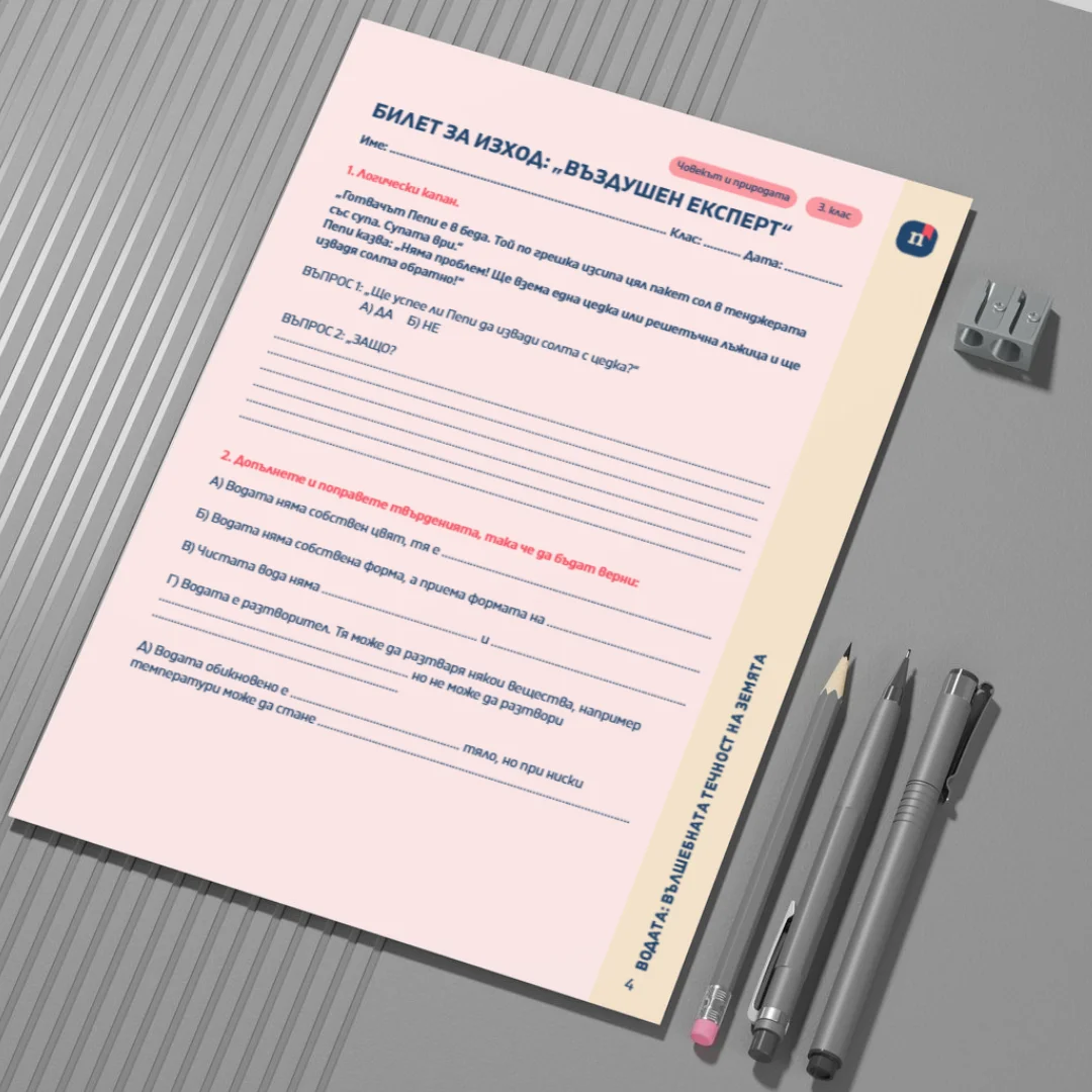Този работен лист е част от урока „Водата: Вълшебната течност на Земята“ (Урок 5 по Човекът и природата за 3. клас). Чрез практически задачи учениците изследват свойствата на водата, сравняват я с други течности и прилагат знанията си при определяне на разтворими и неразтворими вещества.