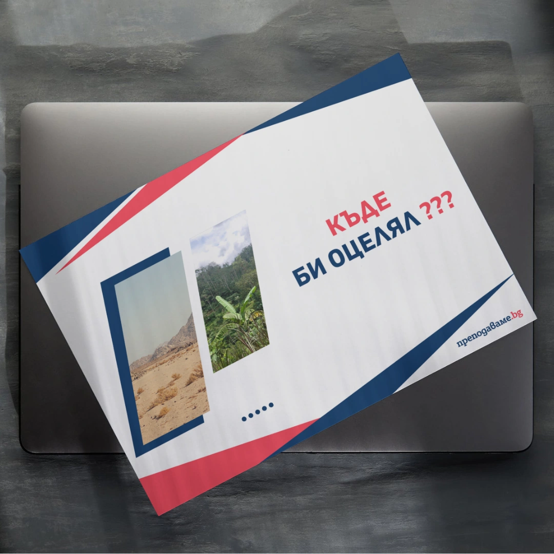 - “Ще ви покажа три различни природни среди. Помислете кои растения и животни биха могли да живеят там. Обяснете каква е причината за това.”